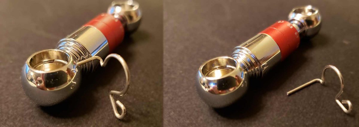 WARNING: Thick automotive grease needs to be inserted into the ball cavity to keep the ball joint lubricated and prevent it from seizing! If the ball joint seizes and gets stuck it could cause the ball to break off in some instances. Please re-lubricate the sockets annually for RSX links that have clips. The new clipless design does not require relubricating. - With the rear factory sensor links removed and the N2itive RSX series lowering links preset to the setting of your choice, we can now begin to install the lowering links. Note that after installation you can easily adjust the length of the links without having to remove them. You would just need to loosen the Allen setscrew, rotate the adjustment sleeve to your new setting and then tighten down the setscrew again to hold that setting in place. Some RSX series links come with a wire retaining clip around each of the links’ heads. These clips must be removed before you push them over the balls and then reinserted after the link is secured to the ball joint. To remove the wire clips, begin by pushing the wire loop at the end of the clip so that the clip is released from the neck of the link. Then rotate the wire clip back and forth as you pull the pin of the clip out of the head of the link.
